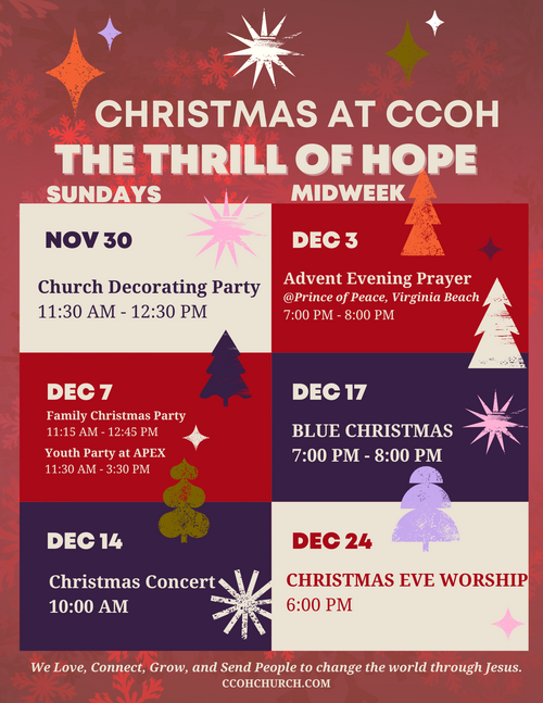 Let's get to know each other! Complete a Connect Card and we'll be in contact to help you get connected at CCOH and to find out how we can serve you.